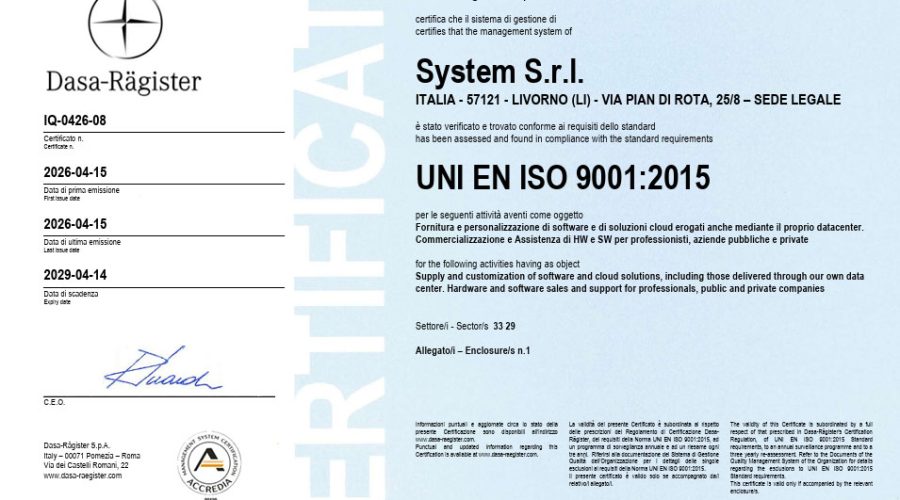 System Srl ha conseguito la certificazione UNI CEI EN ISO/IEC 27001:2024, lo standard internazionale di riferimento per…